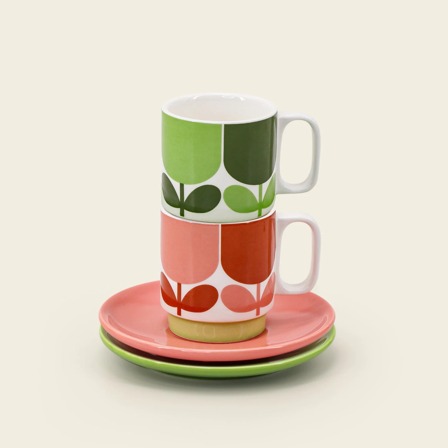 Our espresso cup and saucer set is printed in our Block Flower print in contrasting greens and pinks. The perfect pair!