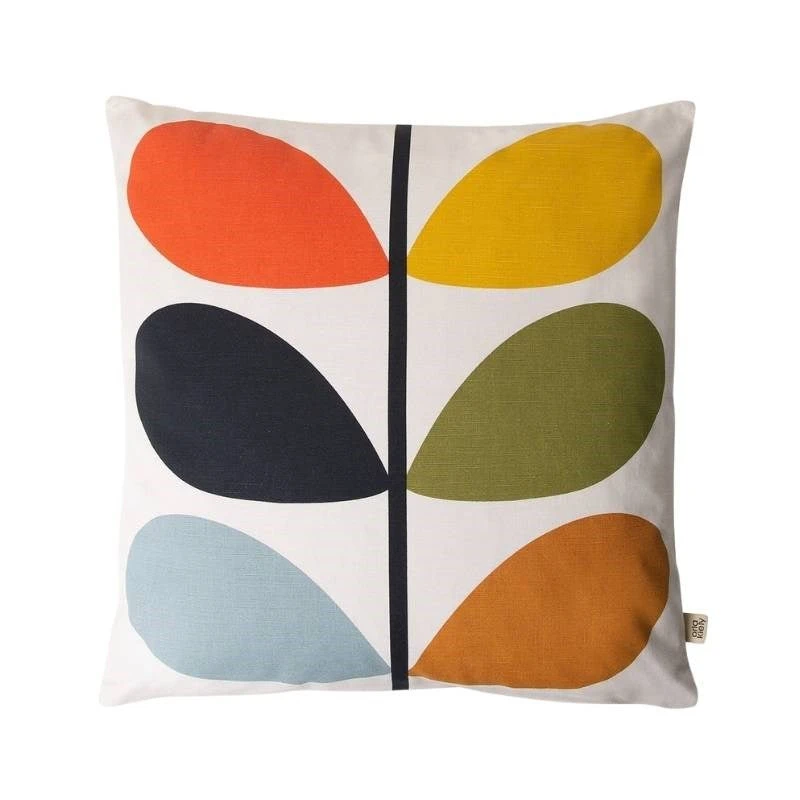 This cushion features the iconic Multi Stem print in vibrant shades of blue, orange, yellow and green. The large scale makes this a standout cushion either alone or mixed in with your favourite Orla Kiely cushions for a bold statement. Features the same print front and back.
